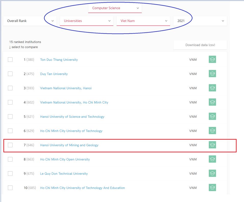 (Xem chi tiết tại: University Rankings - Computer Science - Viet Nam 2021 (scimagoir.com))